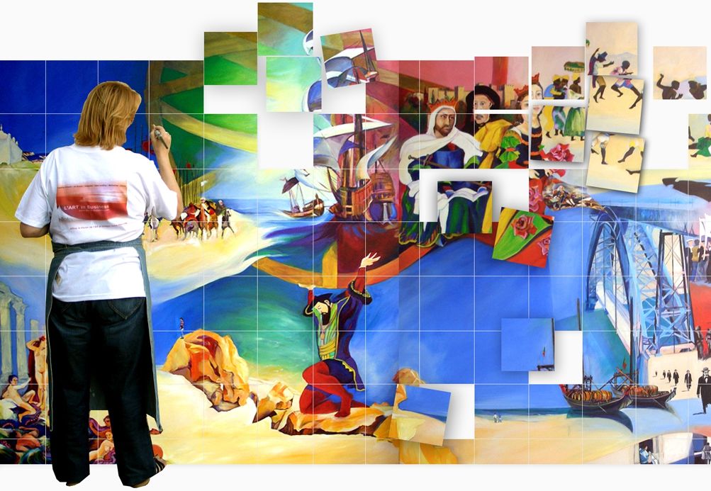 ▪ Une oeuvre originale grand format que l'entreprise conserve dans un lieu public et qui est défiscalisable. Il est possible d'utiliser le visuel pour communiquer ultérieurement et de créer des goodies [cadeaux corporate], créer des décors d'intérieurs pour les murs, les sols ou le mobilier édités par Arte Take Away® .